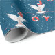 Vit duva med JY Jul-meddelande i snöflingor på blå bakgrund. Bakgrunden till färg kan ändras.