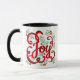 Festive helgdag med söt grönt, holly löv och röda bär. Centrumet säger "Joy" i rött och svart skript omgivet av söta blommor.