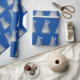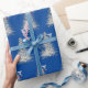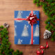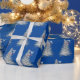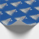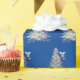 Vit duva med röda Jul-prydnadsämnen och sträng mot blå bakgrund. Bakgrunden till färg kan ändras.