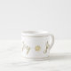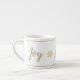 Denna espresso mugg visas i vitt med gyllene färgader och snöflingor med streck-accent överst och grund. Text i finare roligt skript av "Joy". Anpassa det här objektet eller köp som designat.