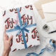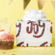 Jultomten hatt på tartan pläderade JOY i roligt font stil på viskött trä med snöflingor.