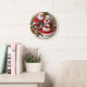 En dekorativ klocka som visar Jultomten och inslag, inklusive gåvor, polkagrisar och grenar, som fångar helgdag med varmt färg och glada detaljer.