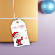 Lägg till en personlig beröring i dina familjepresenter med de här personligerna. Bilden är Jultomten med en gåva och några stjärnor. Minimalistisk design i redot Jul färg för att du bara ska lägga till ditt eget budskap. Illustrerad och designad av Patricia Alvarez.