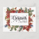 Jul, Kärlek är Born anpassningsbar-vykort visar en elegant handmålad blommigt med rött och guld poinsettia blommor, holly löv, bär och evergreens. Baksidan är Bible Verse John 3:16: "För Gud älskade världen så att han gav sin enda son, att den som tro i honom inte ska dö utan ha evigt liv." Skriptet och hälsning kan anpassas till valfri information.