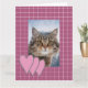 Tre hjärtan och vita rutor på en rosa ram som omger fotot.