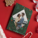 Julkyssar och helgdag önskemål med det här festliga och romantiska mistletokortet mönster. Fyll elegantens romb med ett favoritpar kyss och lägg till anpassningsbarnas Julafton-meddelande i vitt över bakgrunden för den botaniska grönten. En vacker mistel hänger över ditt kyssfoto.