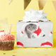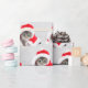 Cute tabby kitten i Jultomten hat på silver-grått-bakgrunden