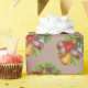Julinslagning papper med levande julklapp Klockor i rött, blått och guld med holly och bär.