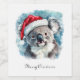 Vattenfärgning av koala med en röd vinterhatt i jul stil