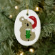 En söt koala bär på en röd julhatt som håller en Julklapp.