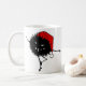 Den onda julen mugg med en läskig, söt, snygg, svart kryp med en julhatt som dansar till nyheterna från en jul-sång.