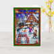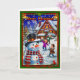 Barn som njuter av en bra liten snöbollskamp på jul Kväll medan snögubbe verkar få det värsta av alla träffar.