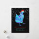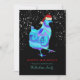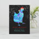 Gläd dina kycklingälskande vänner med denna bedårande färgglada söta höna som bär en tomtehatt på svart bakgrund med fallande snö. Detta roliga festliga fjäderfä-tema julkort är lätt att anpassa med hjälp av typsnittsmallen. Originell modern minimalistisk konst av konstnären Catherine Sweetman