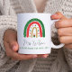 Söt personlig julmugg för lärare med festlig regnbåge, lärarens namn och text "alltid på den snälla listan". Gör en underbar present till din favoritlärare eller någon speciell.