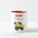 En söt illustration av lastbil fordon under julen i lastbil med en julhatt och dekorerade i ljus med ord i "God jul" som transporterar ett festligt Julgran. Perfekt för pojkar och flickor som kärlek bygger lastbilar, leksak lastbilar eller tunga maskiner. En idealisk jul mugg för lastbil entusiaster stora eller små, flickor eller pojkar.