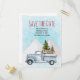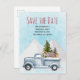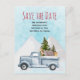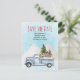 Spara datumet för julvykortet i party med en festlig utformning. En vattenfärgad lastbil som transporterar gräs träd och några trädjur på. En björn, en räv och en hjort i ryggen som åker på en tur.
