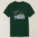 En t-shirt med festlig helgdag. En lastbil som bär på gräs träd under jul och några trädjur skapat med vattenfärg. En björn, en räv och en hjort i ryggen som åker på en tur.