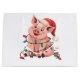 Plump gris malning i en julhatt omgiven av flytande bakterieformade prydnadsämnen. "Oink the Halls" i det tysta skript ovan.