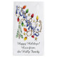 Vintage illustration tecknad God jul helgdag med ord "Helgdagar" täckt med färgstark gult, rött och grönt jul ljus. Omgiven av lysande guld-stjärnor och ett Julgran från skogen.