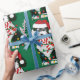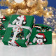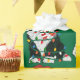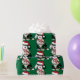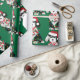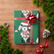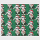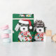 Cute Tecknad Black & White Sheepadoodle Puppy med julhatt, röd och vit strimlad scarf, inslagen i julmas ljus. Bekvämt fårkött som är pappert.