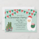 Cute Lama i en julhatt med presenter som täckmantel. Färgfläckar och grönt party flaggor och blomkaktus med prydnadsföremål för en söt roligt jul party.