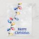 Jul Lökar, String Ljus, Helgdag vykort - En vacker vattenfärgdesign för stora julklammersträngar ljus. Utformningen rör sig lodrätt framtill med God jul vid grund. Båda sidor har en mjuk vit stjärna och snöflingor. Baksidan av vykortet har ett utrymme för namn och adress och har även helgdag ljusdesign. Glad helg från Kristin och Steve - KNS Card Shop.