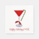 Rött martinistiskt glas med candy cane och röd båge på vit bakgrund. Texten kan redigeras eller tas bort.
