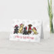 Julkort för Labb-fans!! Söt Labrador Retriever- tecknad design med fem labradorer som väntar på julen med julgransprydnader och tomtehattar. Så en härlig stund under högtidsperioden!