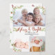 "God jul på ett fotosamlingskort med Bright Script Calligraphy Photo Collage Card with Family message." Skripthandskrift i röd burgundi med skugghögdagrar från ro guld glitter, ditt familjesyndrom, namn och år avfärdar dina favoritfamiljfoton och är säker på att bli ett uppskattat minne av alla som du skickar dem till. Det internationella upphovsrättsverket Audrey Jeanne Roberts har målat ett enkelt, lätt och mjölkfärgat verk av bär och löv.