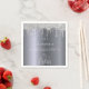 En faux silver-metallisk tittar bakgrund med faux silver glitter drop, lite av lek och lyx för en jul Party. En vinterskog, träd som dekoration. Med texten: Julmiddag. Mall för din familj namn och år, vita brev.