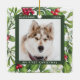 Dekorera en speciell gåva från träd eller ge i julhelg med det här eleganten husfoto i en kronornament för krans och matchande dekoder. Den här hund är ett prydnadsämne med en vattenfärgad grönt och ett rött andetag med holly och bär. Anpassa med namn, år tillbaka. Detta ornament för sällskapsdjur kommer att vara en favorit bland djurälskare, hundälskare och djur älskare. Besök vår samling för att matcha jokerkort för sällskapsdjur, hemdekanter och presenter. COPYRIGHT © 2020 Judy Burrows, Black Hund Art - Med alla Höger reserverade. Jul Mistletoe Personlig Pet Hund Photo Ceramic Ornament