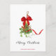 Kortet Mistletoe-vykort med rött band och kalligrafi av God jul är enkelt och elegant.