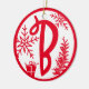 Jultemat, monogram brev B, i rött mot vit bakgrund. Du kan ändra vitt och rött genom att klicka på länken "anpassa ytterligare". Cute brev B med snöflingor, gräs och en inslagen present.