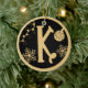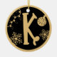 Jultemat, monogram brev K, i guld på svart bakgrund. Svarta och guld kan ändras genom att klicka på länken "anpassa ytterligare". Cute brev K med snöflake, ljus och en bauble.