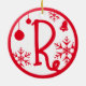 Jul Monogram Brev R Röd vit Julgransprydnad Keramik