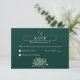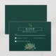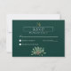 Svarskortet är en del av julklappen Monogram Wedding Suite som skapats av enbart Farmhouse Press. Det är en enkel, rustik utformning med helgdag grey touches som är perfektens inbjudan till bröllop i helgdag. Den här designen har en mörk grönt baksida, men den är också tillgänglig med en vit baksida.