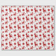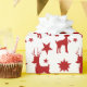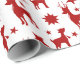 Förpackning papper med illustrerad mönster, röda silhuetter med vuxen och unga renar, med gyllene stjärnor i bakgrunden, perfektens inslagning för julens julhelg