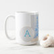 snö täckte vattenfärgen träd, med färgad ljus på mitten evergreen. En cirkel med ett monogram för din gåva ge. och "en liten jul till dig" över grund i färgad med en ordalydelse som matchar ljus på träd. Kristina Andersson originalteckning och mugg-design