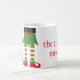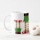 Keramiskt kaffe mugg visas med en julklapp på julen. Elf-helgdag är tryckt med elven som fick mig att göra det.