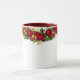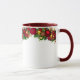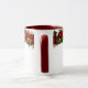 Keramiskt kaffe/te/kakao mugg visas med ett helgdag- och konsthandlingsavtryck för julgranar. Mugg färg visade vitt med en maron färg insida och handtag. Anpassa det här objektet eller köp som det är.