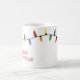 Julkaffe av keramiskt helgdag mugg visas med ett färgutskrivet helgdag med God jul text. Anpassa det här objektet eller köp som det är. Bild från lagrar