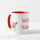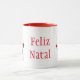 Keramiskt kaffe/te/kakao mugg visas med texten "Feliz Natal" [God jul på språk från Brasilien till Sydamerika] i helgdag. Snögubbe trycks på båda sidor om mugg. Anpassa det här objektet eller köp som det är.