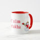 Keramiskt kaffe/te/kakao mugg visas med helgdag-konstens julklapp med texten "Mo'adim Lesimkha" [God jul på det israeliska språket]. Snögubbe trycks på båda sidor om mugg. Anpassa det här objektet eller köp som det är.