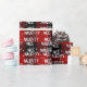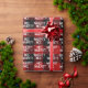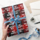 Vit NICE NAUGHTY-text med snöflingor på en röd och svart buffelbaksida. Text kan redigeras.