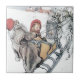 Vintage Julkonst som skildrar en liten flicka som rider med Nisse i en sled som dras av getter. Konst av den svenska målaren Carl Larsson.