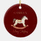 Den här pappra babeldesignen i Julgran med vit färg har en barnscen i Nutcracker som är komplett med en ballerina, mus och leksak soldat på framsidan med julklackande häst på baksidan. Den här barnens personlig Julgran-dekoration har slutförts med ett anpassat namn och ett God jul-meddelande för det roliga skriptet guld.