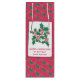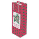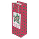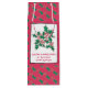 Denna vackra presentpåse vin flaska kan vara personlig med hälsning och namn. Bakgrunden är röd och täckt med grönt holly löv. Det finns en hand plockade och en färgad som är utformad för att användas som skal och bär på vitt, med svart gräns och hälsning nedanför. Konsten är ett originellt teckning av Konsten Beth.