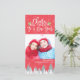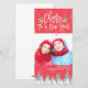 God jul och Cheers till ett nyårstidsfärgat färgtonsskript Rött och vitt Snöflingor och Julgran Julhälsningar fotokortmallar.