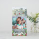God jul och Cheers till ett nytt år Julhälsningar fotokortsmallar - Röd och Grönt Vatercolor-julandedräkt med mistletoe, bär och gräs träd på Snö-jordmånsbakgrunden.