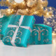 En mycket luxär och snyggt julomslutning papper med en modern utformning av contemporaryn. Det finns metalliska Julgranar, silver renar, ord, "Merry and Bright" också i silver (inkapslade med mycket liten biet i silver, endast utskriven) och gott om gnistor. I bakgrunden är en mycket levande akvatyrgradient mönster som fångar mycket öga i ge och där denna söt ser papper ut som mycket lyxig.